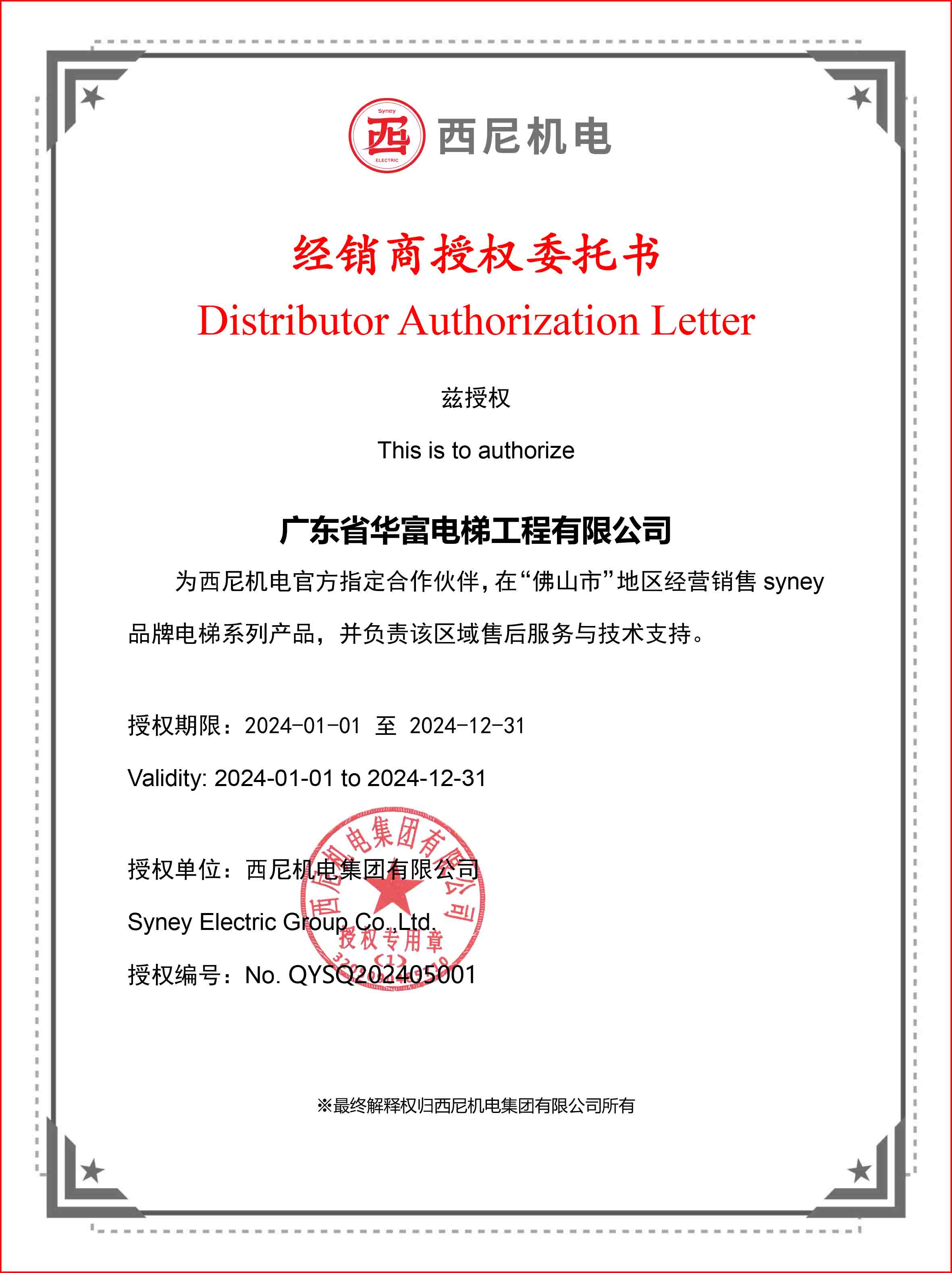 西尼機電集團電梯安裝委托書